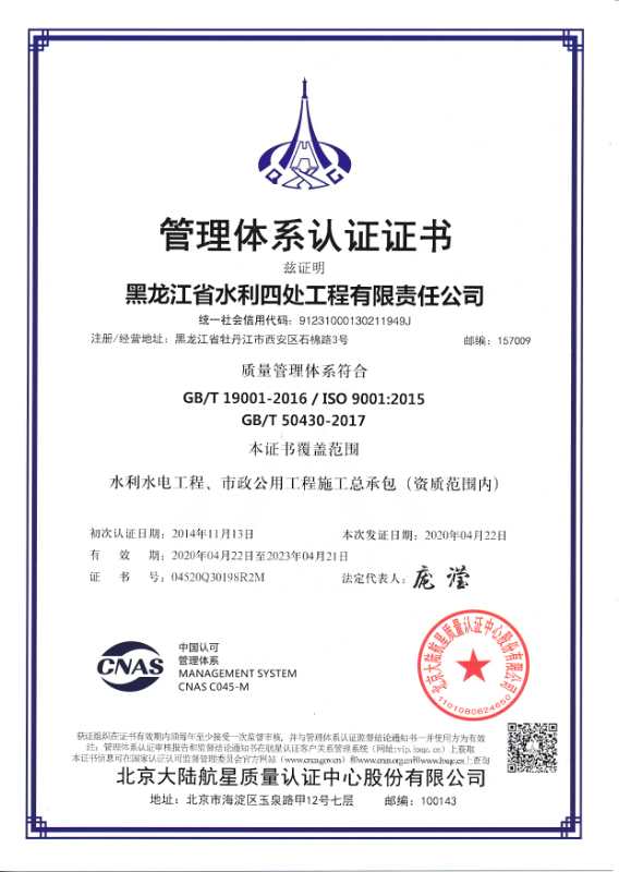 质量管理体系证书